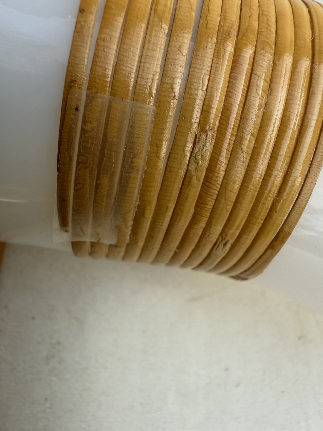 Kastrup Glassworks, 4 glasses with bamboo wrapping, height 8.7cm, diameter 6.8cm, on two glasses the bamboo wrapping is held in place by a small piece of tape (see photo), otherwise in good condition.