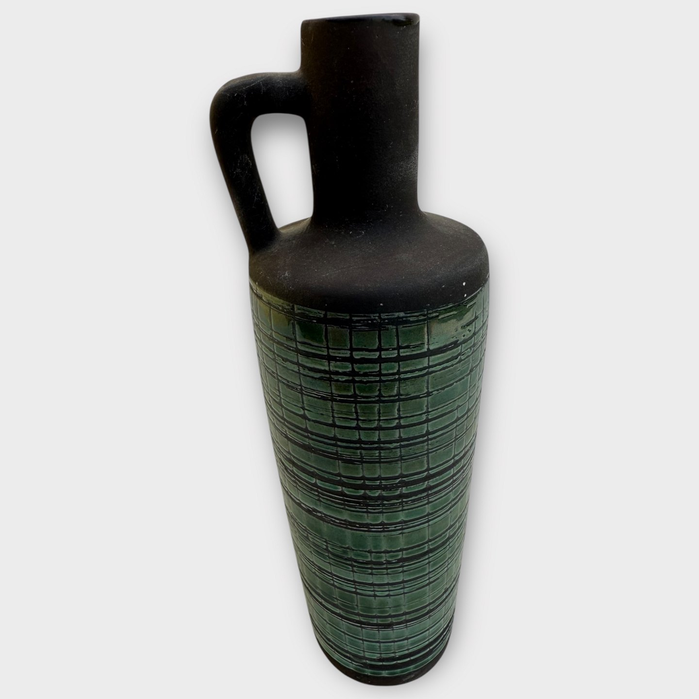 Strehla keramik, retrovase, med hank, Grøn og brun, højde 21cm, pæn stand