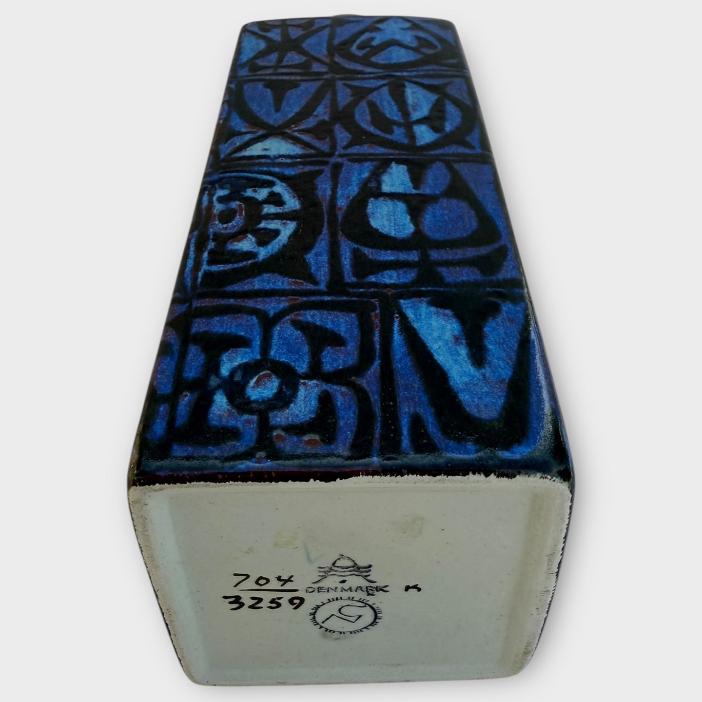Aluminia / Royal Copenhagen, Baca vase med blåt mønster, #704/3259, Højde 22,5 cm, fod 8x8cm, Fin stand