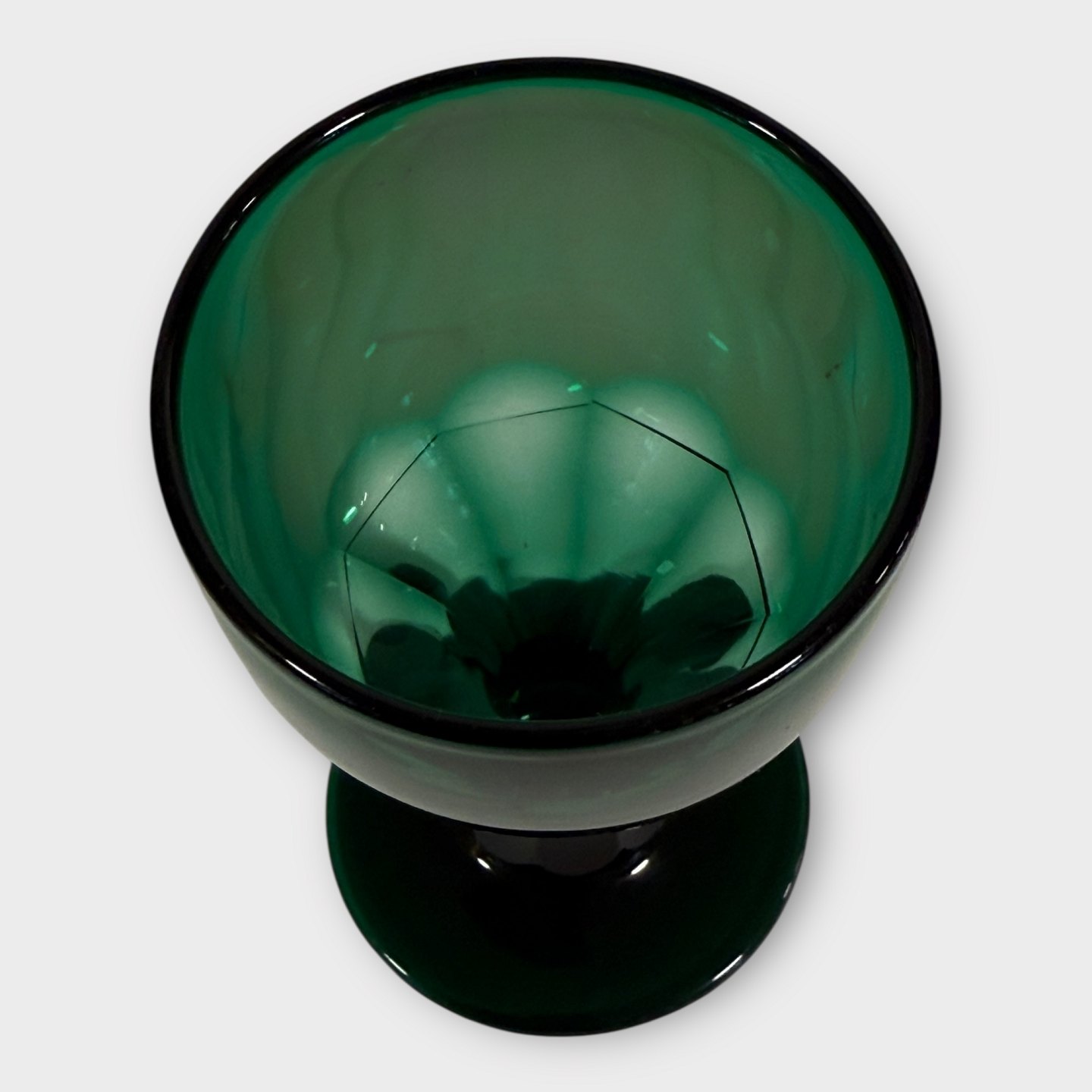Ældre grønt glas med facetslebet stilk og kugleslebet bunde, højde 11,5cm, flot stand