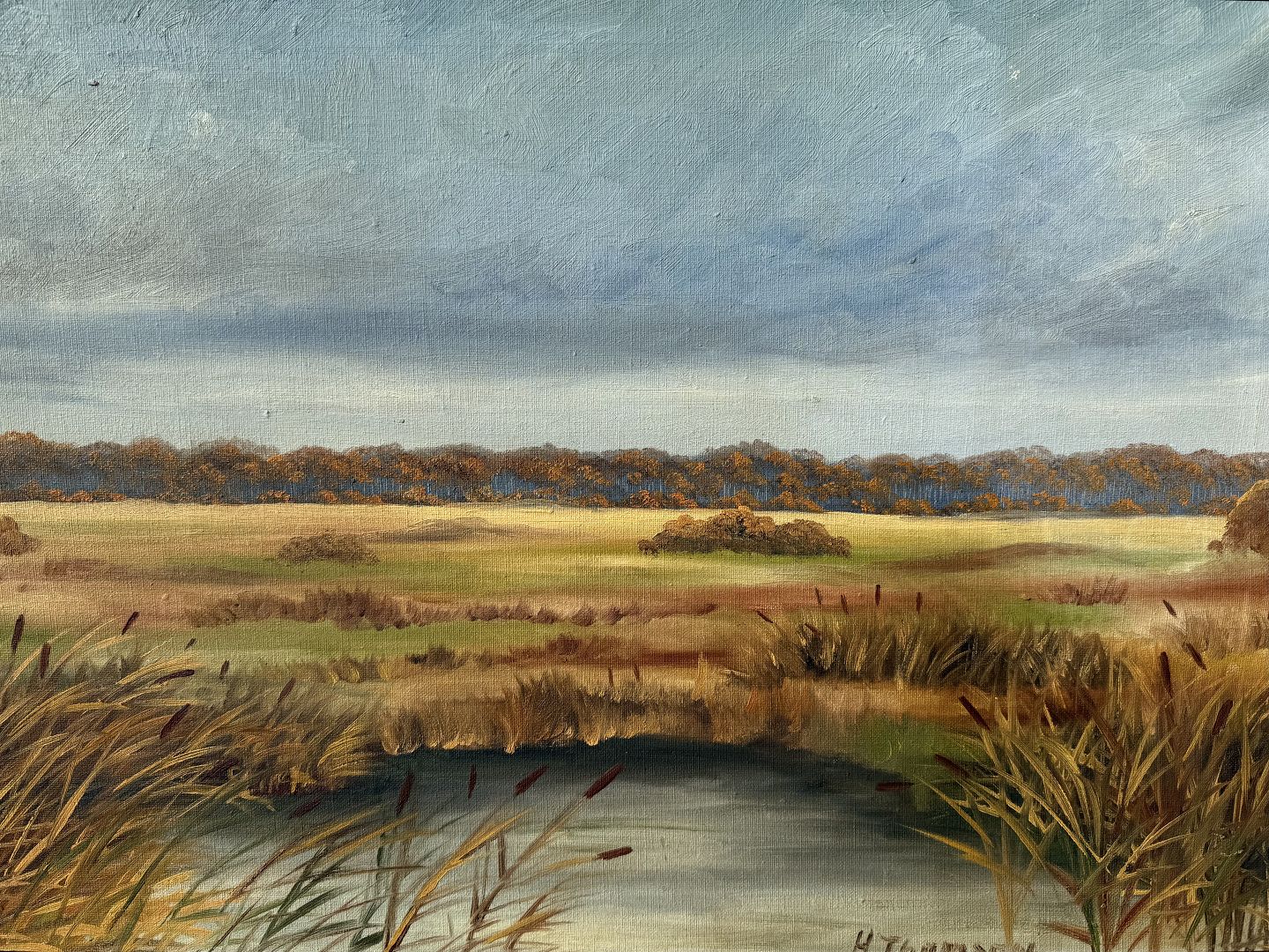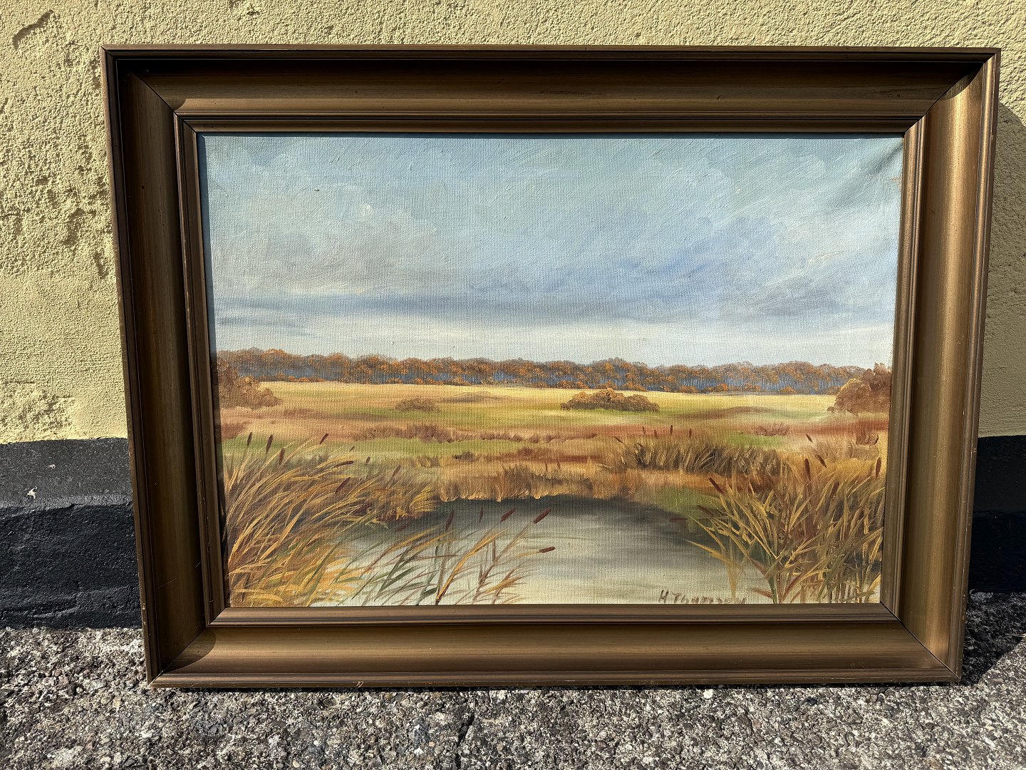 H. Thomsen, Landskabsmaleri, olie på lærred, Mål med ramme 77x58cm