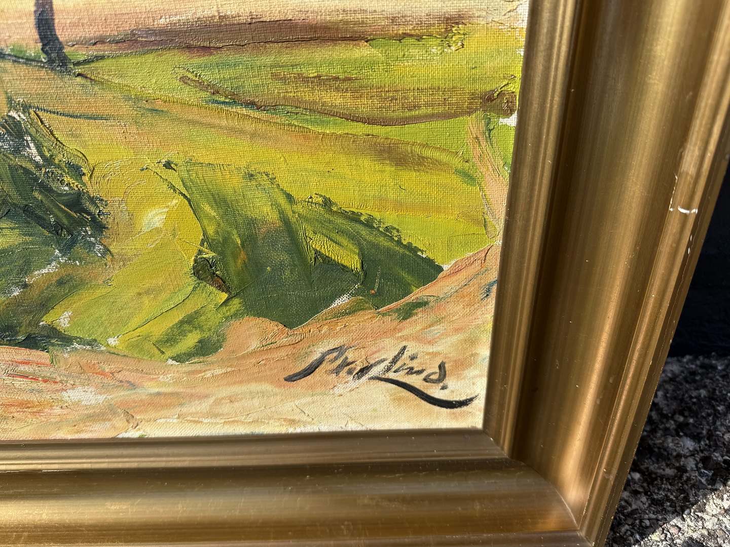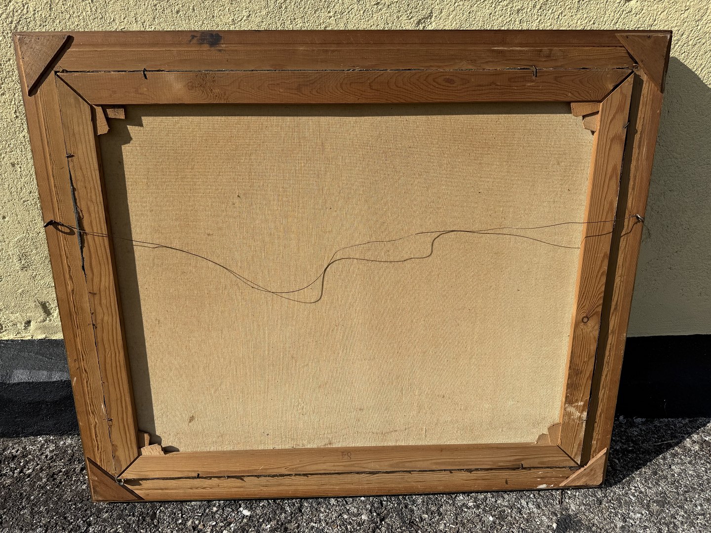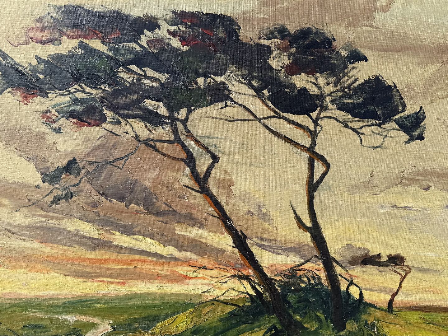 Axel Lind ( 1907-2011), Olimaleri på lærred, Forblæste træer i Vestjylland, Mål med ramme 96x79,5cm, pæn stand
