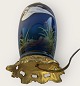 Large table lamp with flying bird in porcelain and brass, height with socket 39cm *Some small cracks under the glaze (see photo) otherwise in great condition