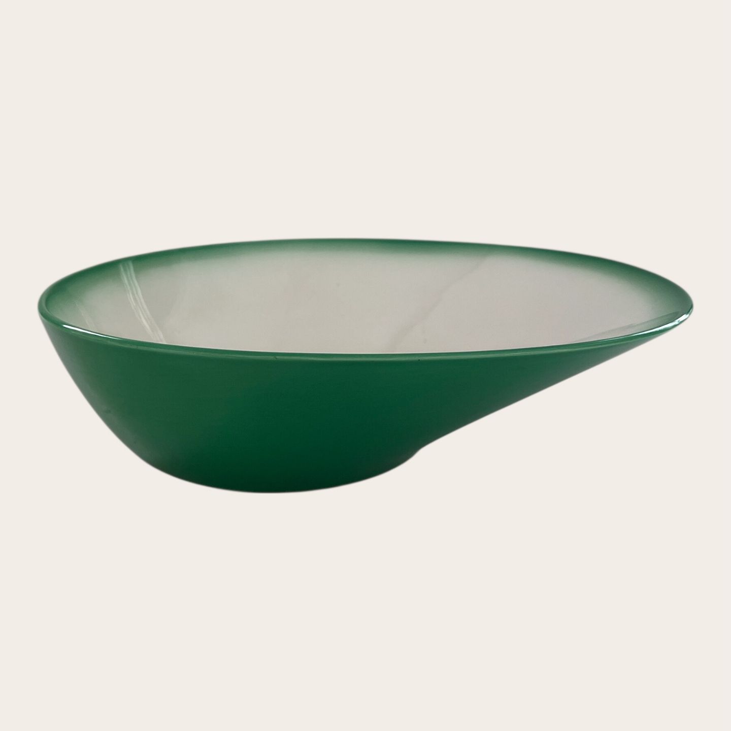 Royal Copenhagen, Aluminia, Ursula, Asymmetrical bowl, Green / white, 1st grade, 30.5cm long, 24cm wide, 8cm high, Design Ursula Munch Petersen *With traces of use*