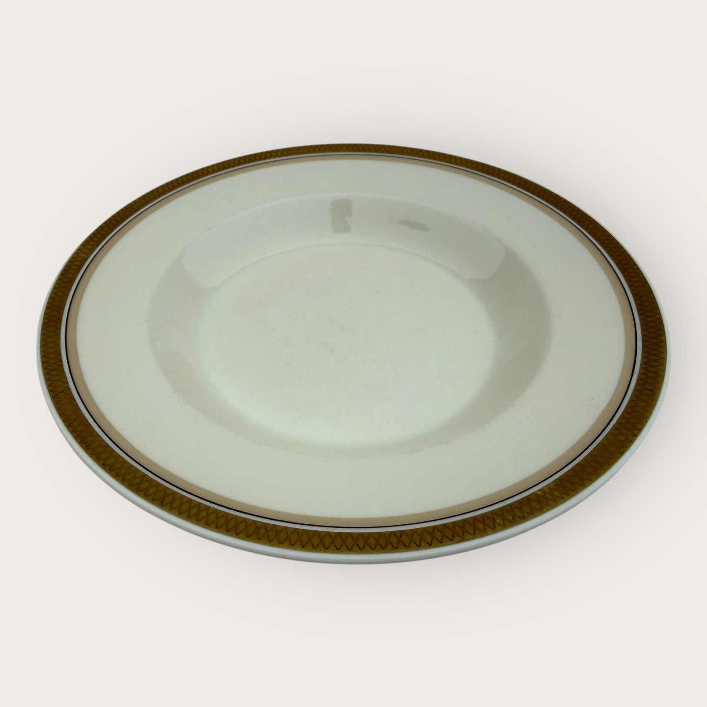 Royal Copenhagen, Liselund uden dekoration, # 1137/9587 (også kendt som 1173) , stor dyb tallerken, 24,5cm i diameter, 1. sortering *fremstår med lidt misfarvning på guldkanterne ellers pæn stand*