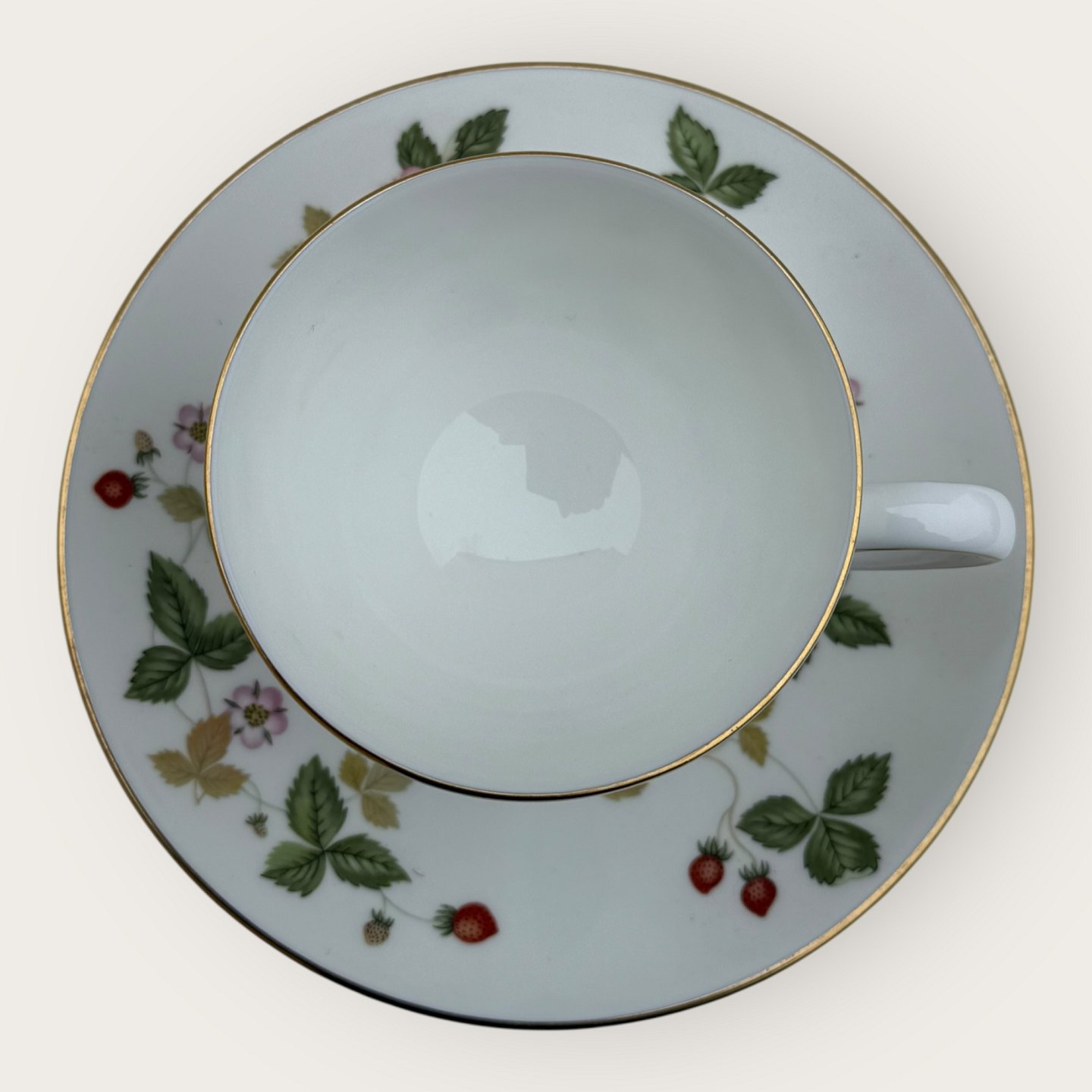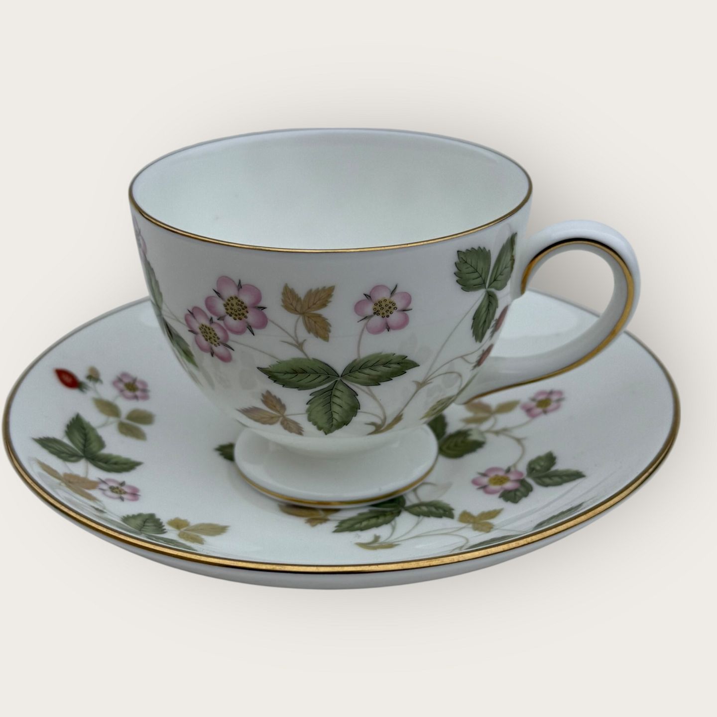 Wedgwood, Wild strawberry, cup with saucer, Cup dimensions: height 6.5cm diameter 8.2cm *Perfect condition*
