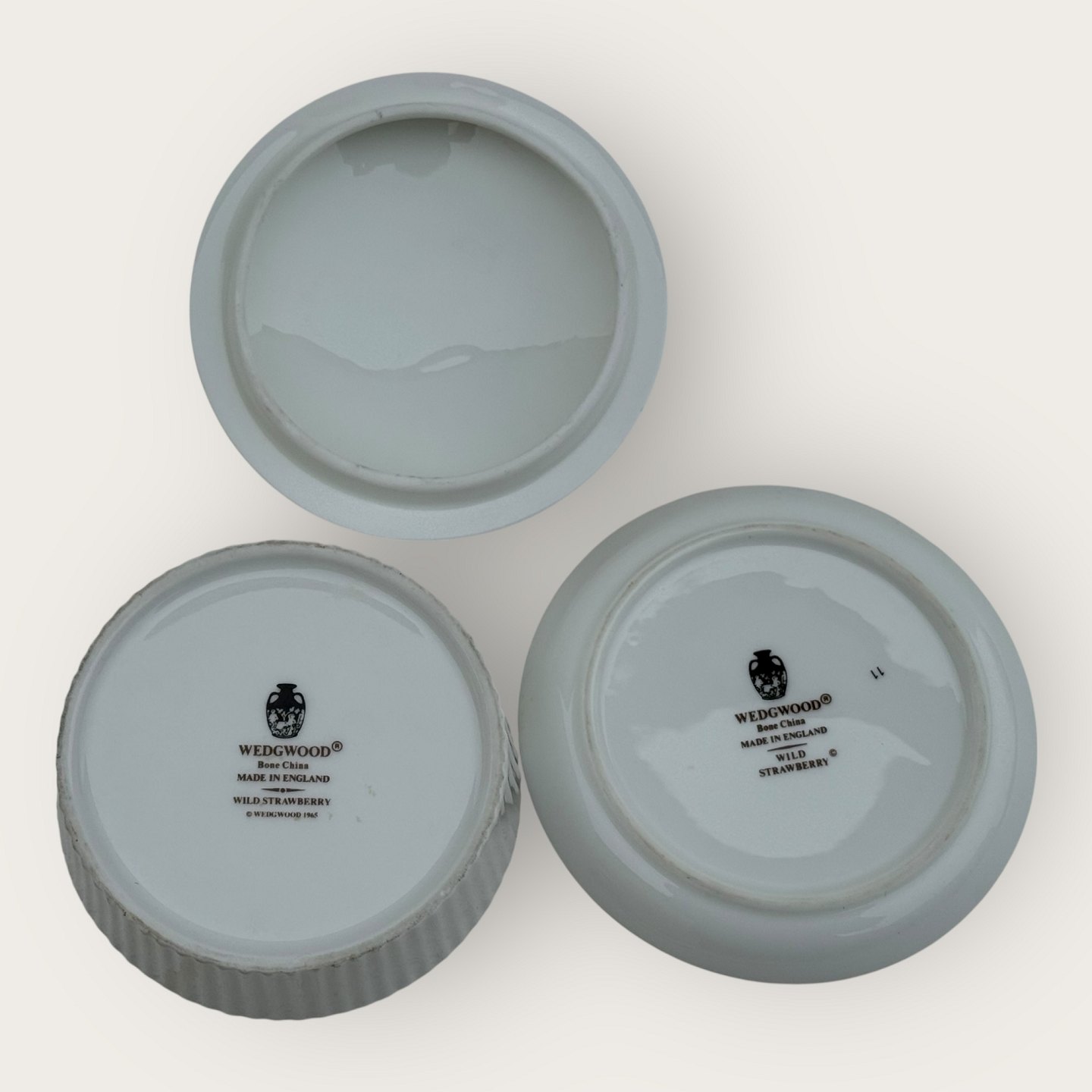 Wedgwood, Wild strawberry, Small bowl with lid and a saucer, diameter bowl 9cm *Perfect condition*