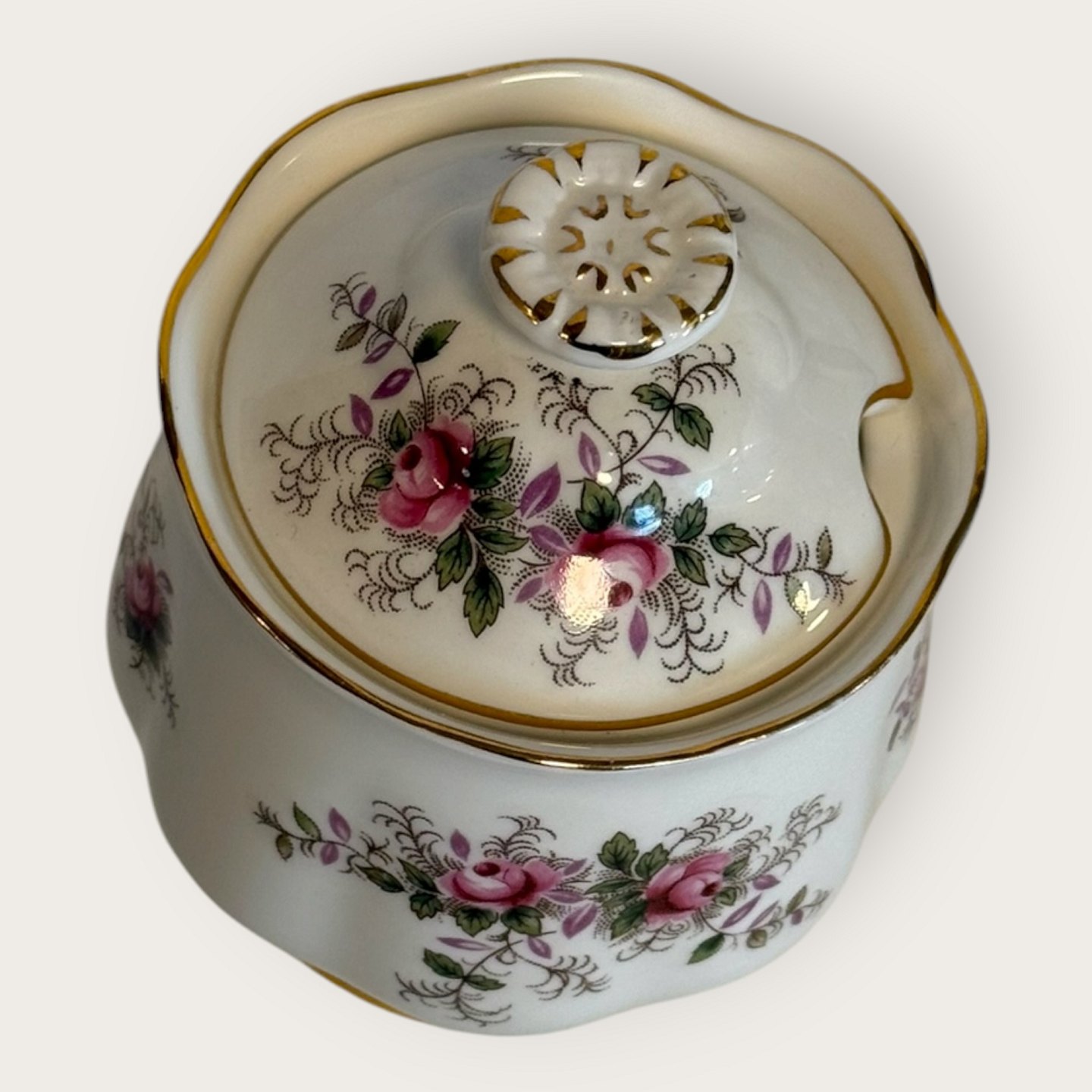 Royal Albert, Bone China, Lavender Rose, Jam jar with lid, height 10cm *Perfect condition*