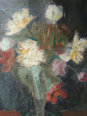 Mikael Schou (1912-86): Blomster i vase. Olie på lærred, Sign.: MS. 65x55 (71x61)