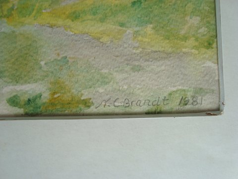 N. Chr. Brandt (1911-98): Parti fra øen "Nólsoy" på Færørerne. Øen hedder "Nolsø" på dansk. Akvarel og blyant. Sign.: N.C. Brandt - 1981. 24x33 (39x50)