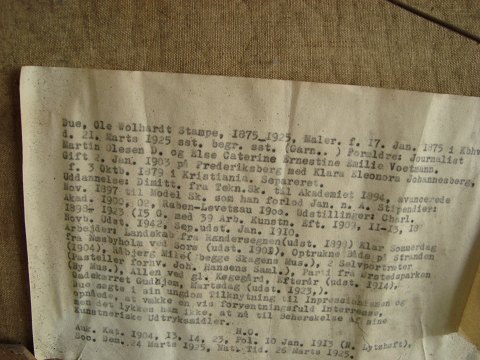 Ole Due er udlært fra kunstakademiet i København 1894 og gik på modelskolen 1897-98.