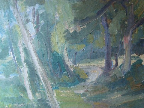 Martin Kaalund-Jørgensen (1889-1952): "Vej gennem skov" 1927. Olie på lærred. Sign.: MJ - 27. 43x56 (53x65)