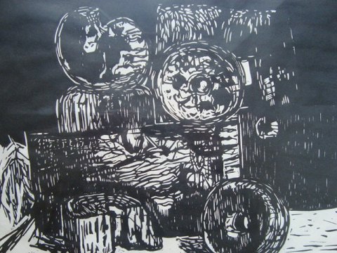 Træsnit på papir.