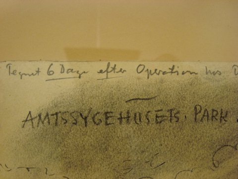 Dedikeret - "Tegnet 6 dage efter operation hos Dr. Med. J. Fabricius-Møller - Overkirurg ved Aarhus Amtssygehus - Med tak - venlig hilsen Martinus Hougaard.