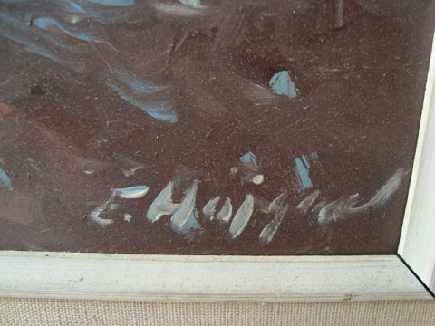 Erik Højgaard (20 årh): "Kvier" Olie på plade. Sign.: E. Højgaard. 33x41 (52x46) Maleriet kan evt. også være af kunstneren Erling Højgaard (1891-1959), der var Charlottenborgudstiller.