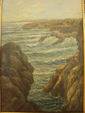 Alfred Märtens (1888-1936): Bornholmsk kystparti "Den Sorte Ovn" Olie på lærred. Sign.: AM Bagpå blindramme betegnet "Den Sorte Ovn Bornholm" 35x25 (47x37)