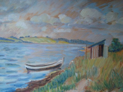 Bagpå betegnet - Landskab fra Mossø, Jylland.