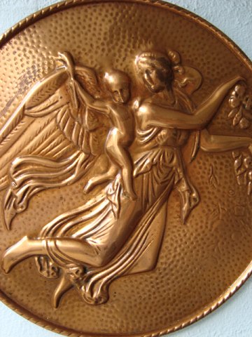Rund kobberplakette med Thorvaldsen motiv Hamret kobber Diameter 25 cm.