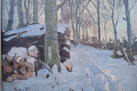 Smukt og dejligt maleri i en lækker patineret guldramme.