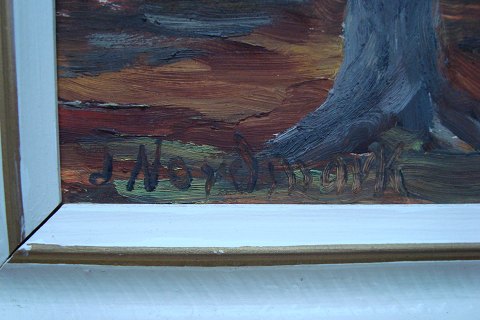 Ubekendt kunstner (20 årh): Skovparti. Olie på plade. Sign.: J. Nordmark (?) 23x30 (30x37)