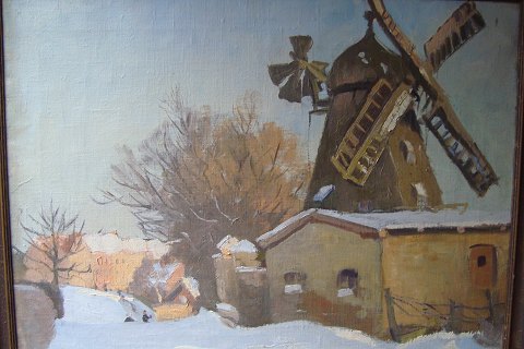 Vinterparti fra Vesterbro Mølle med villa i Aarhus.