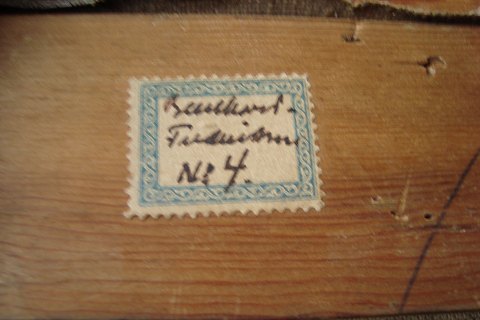 Bagpå blindramme - Udstillingsmærkat med no. 4.