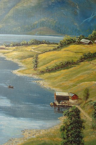Tor Messel (født 1937): Norsk kystparti 1971. Olie på lærred. Sign.: Tor Messel 71. Tidligere solgt på Malernes Utstilling i Oslo. 70x60 (88x78)