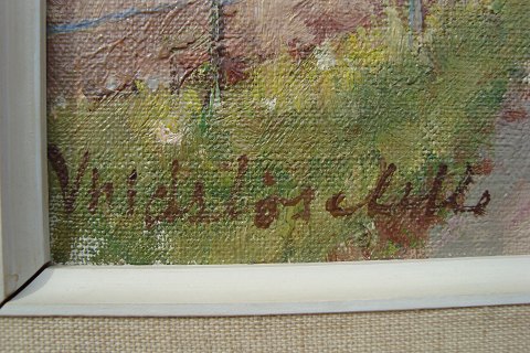Theodor Ulrichsen (1905-70): Landsbygade fra Vrisdløselille. Olie på lærred. Sign.: Th. Ulrichsen 27x35 (44x52) Ulrichsen var uddannet fra Teknisk skole og Kunstakademiet - senere vejledt af L.A. Ring.