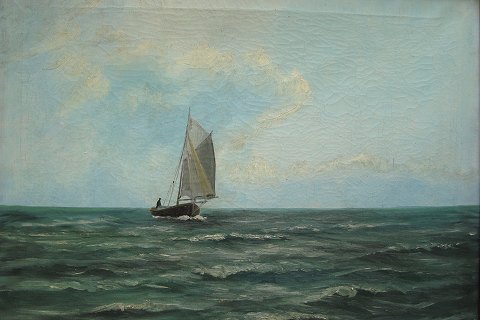 Reinhard Johansson (20 årh): Sejlskib på åbent hav. Olie på lærred. Usigneret. 48x61 (57x70)