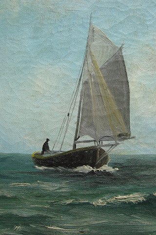 Reinhard Johansson (20 årh): Sejlskib på åbent hav. Olie på lærred. Usigneret. 48x61 (57x70)