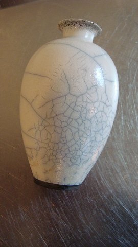 Raku Galleriet, Telling: Raku vase med hvid craquelé glasur. Stemplet - Raku Galleriet Telling. Højde - 15 cm.