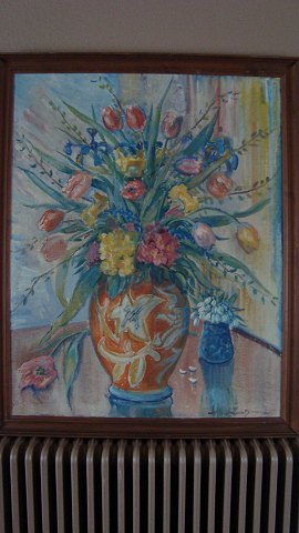 Opstilling med 2 blomstervaser - stor smuk vase med forårsblomster samt lille vase med vintergækker 1942.