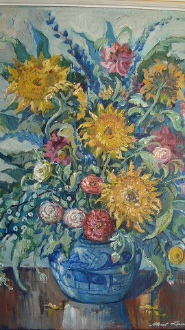 Aksel Lundgreen (1908-89): Blomster i blå kinesisk jingerjar. Olie på lærred. Sign.: Aksel Lundgreen 87x67 (94x74)