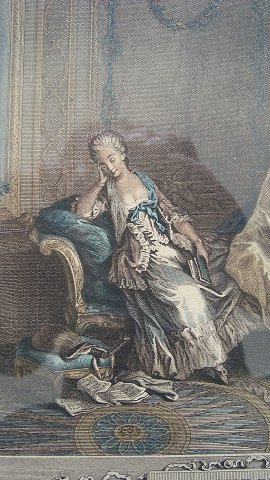 Fransk inskription: LE BOUDOIR N'entrez pas....de vos avantages Ne Pouvez-vous de loin, ā votre aise Jouir: Du moins Laissez ā vos ouvrages le talent heureux d'endormir. En bas ā gauche.