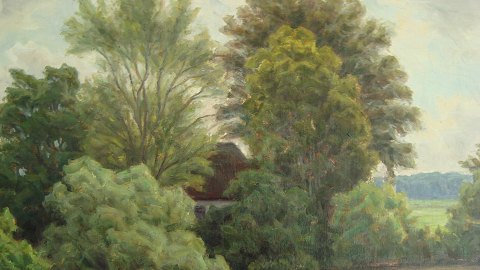 Henrik Jespersen (1853-1936): Landskab med sø. Olie på lærred. Sign.: Henrik J. 52x77 (68x93) Henrik Gamst Jespersen var elev af Vilhelm Kyhn og gik på Kunstakademiet i København 1879-82. 16213