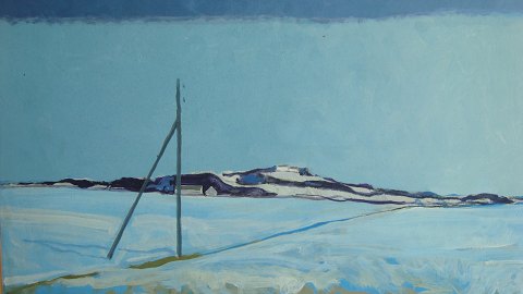 Poul Møller (20 årh): Vinterlandskab ved Børglum Kloster i Vendsyssel. Olie på plade. Usigneret. 37x71 (39x73)