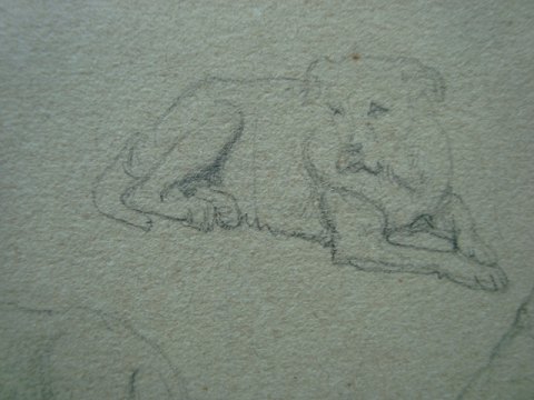 Skitser af Mand og kone, samt hunde og løver.