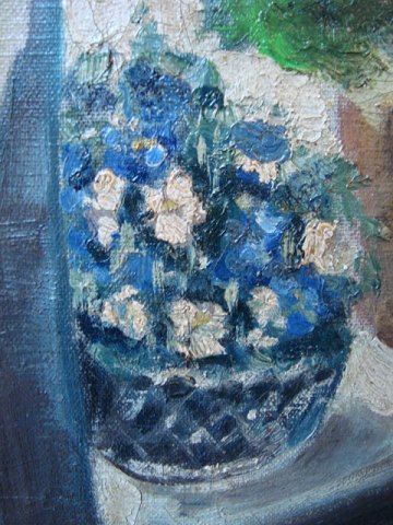 Aksel Lundgreen (1908-89): Potteplanter i vindue. Olie på lærred. Nyrenset. Sign.: A. Lundgreen 43x33 (54x43) Tidligt arbejde af Lundgreen.
