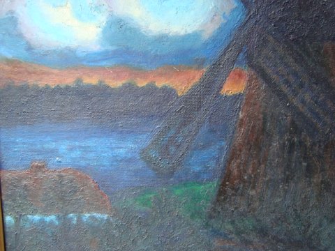 Mølle i landskab ved solnedgang 1967.