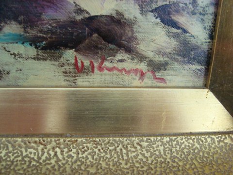 Ubekendt kunstner (20 årh): Ballerina. Olie på lærred. Sign.: V. K.... (Én af mig ukendt signatur - kan nogen hjælpe?) 40x30 (47x37)