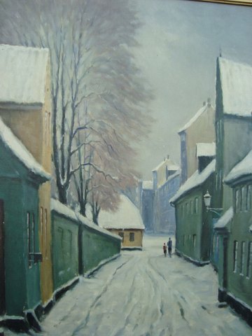 Vinterparti fra Skolegades Vandgyde - sidegade til daværende Skolegade i Aalborg (Nuværende gadenavn er efter 1939 - Vingårdsgade).