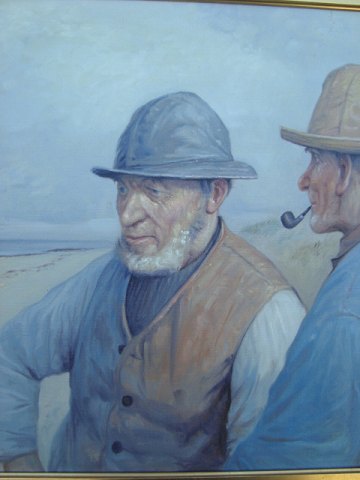 2 fiskere i samtale på stranden.