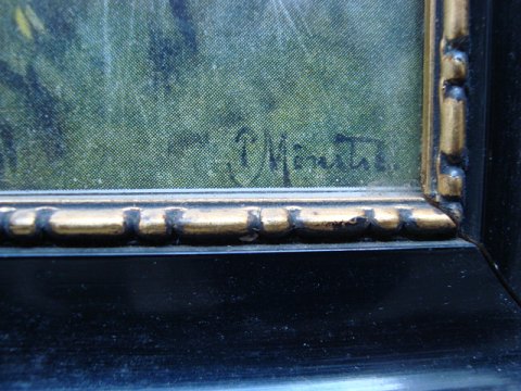 2 tryk i sorte lakrammer med guld. Efter malerier af Peder Mønsted (1859-1941). Skov/søpartier. Offset tryk på papir ca. 1920. Signeret i trykket - P. Mønsted. Indrammet - 37x28 og 40x31.