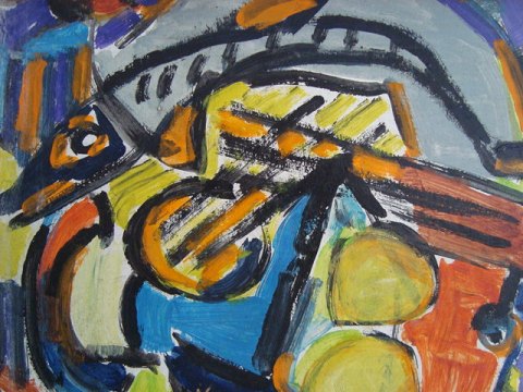 Abstraktion - Opstilling med fisk og citroner 1973.