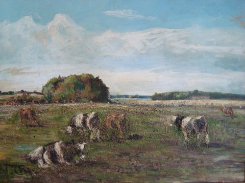 Niels Christiansen (1873-1960): Køer og kvier på engen. Olie på lærred. Sign.: N.Chr. 48x62 (60x75) Niels Christiansen var uddannet fra Teknisk skole.