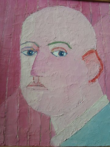 Peter Lüders (1942-92): Portræt 1986. Olie på plade. Sign.: Peter L. 86 (bagpå plade) Bagpå også - Nr. Tornby - Hirtshals Indrammet - 33x31