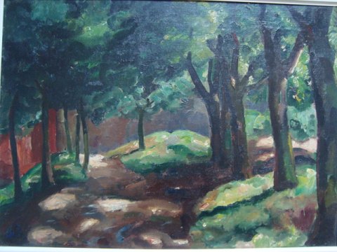 På blindramme med bly - Willy Bille - Parti fra Klintholm Skov, Møn 1932.