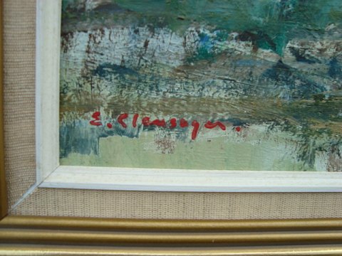 Erik Clausager (20 årh): Landskab. Olie på lærred. Sign.: E. Clausager 32x45 (51x63)