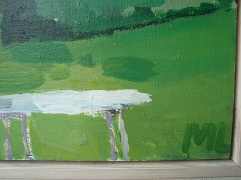 Morten Larsen (20 årh): Haveparti. Olie på lærred. Sign.: ML Indrammet i svæveramme. 52x43 (56x47)