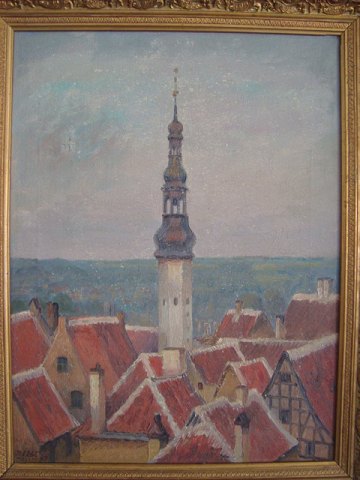 Bagpå blindramme med Kirke i Reval (tysk navn for Tallinn)